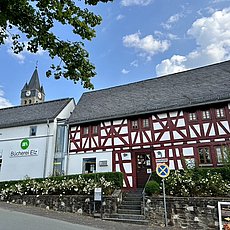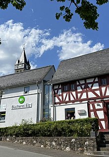 Die Bücherei befindet sich an der Zufahrt zum Rathausplatz.