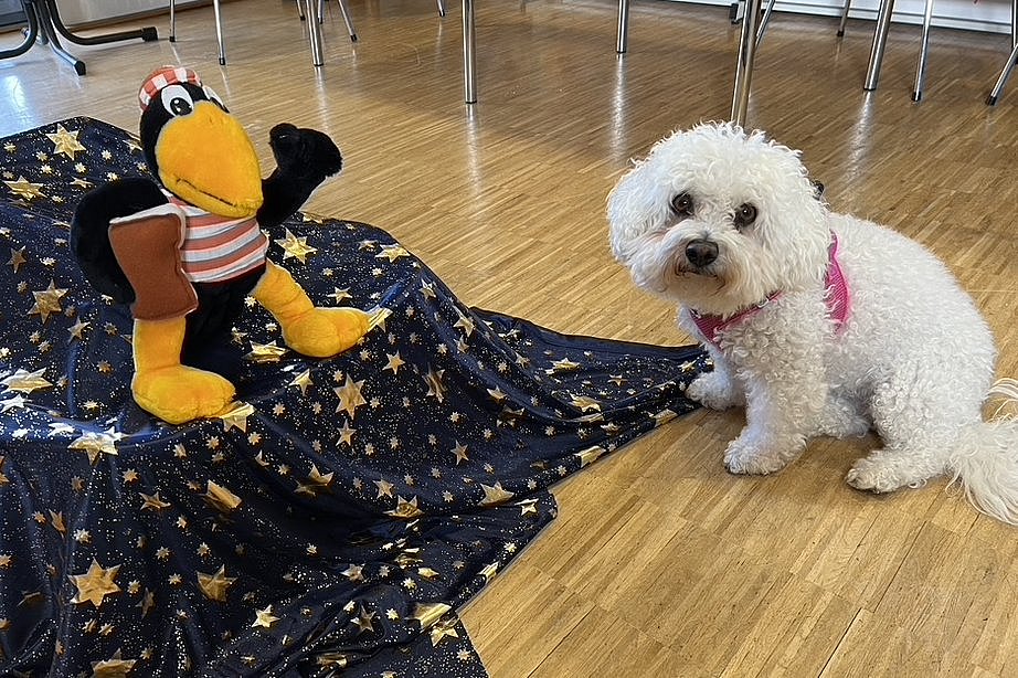 Wenn die Vorschulkinder und Schulkinder die Bücherei besuchen ist Lucy immer mit dabei!
